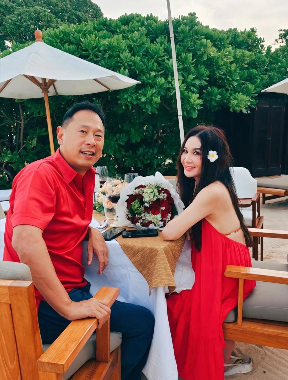 就连 59 岁生日宴都没逃过议论,她穿件侧面镂空的粉色透视吊带裙,老公何祖光却踩着黑布鞋配条纹 T 恤,被调侃 “像农民陪贵妇逛街”。网友锐评:“女神对吊带是有执念吧,可惜每次都栽在状态上”。
